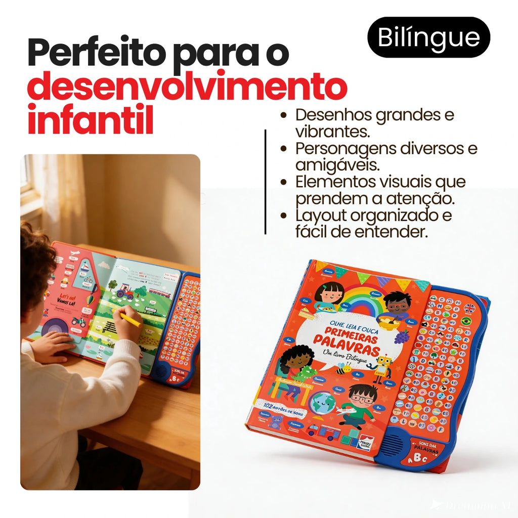 O Livro Interativo Infantil Sonoro Bilíngue Primeiras Palavras foi desenvolvido para tornar o aprendizado das crianças muito mais divertido e envolvente.